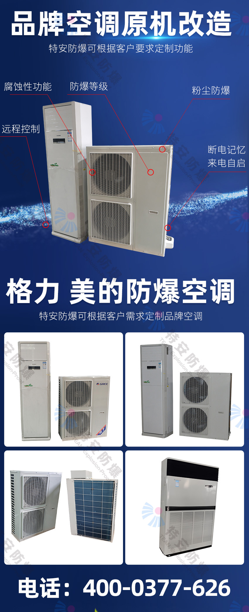 可根據(jù)用戶要求,對現(xiàn)場特殊空調設備進行防爆處理。例如:大型冷水機組、冷凍機組、中央空調設備以及特殊安裝形式的空調設備進行防爆處理,我們將設計制造方案,提交用戶查,必要時,可根據(jù)用戶要求,申請防爆檢測中心在現(xiàn)場進行產品防爆性能檢測;