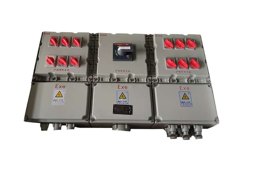 通過(guò)將多個(gè)防爆電磁起動(dòng)器或電磁起動(dòng)箱和防爆斷路器、操作柱和防爆接線箱等組合,可在電壓380V的三相交流50Hz的配電系統(tǒng)中實(shí)現(xiàn)動(dòng)力配送及電動(dòng)機(jī)的集中控制,支路可達(dá)160A,可根據(jù)用戶要求實(shí)現(xiàn)遠(yuǎn)距離控制,并可根據(jù)要求裝信號(hào)燈、電壓表、電流表等監(jiān)控裝置;