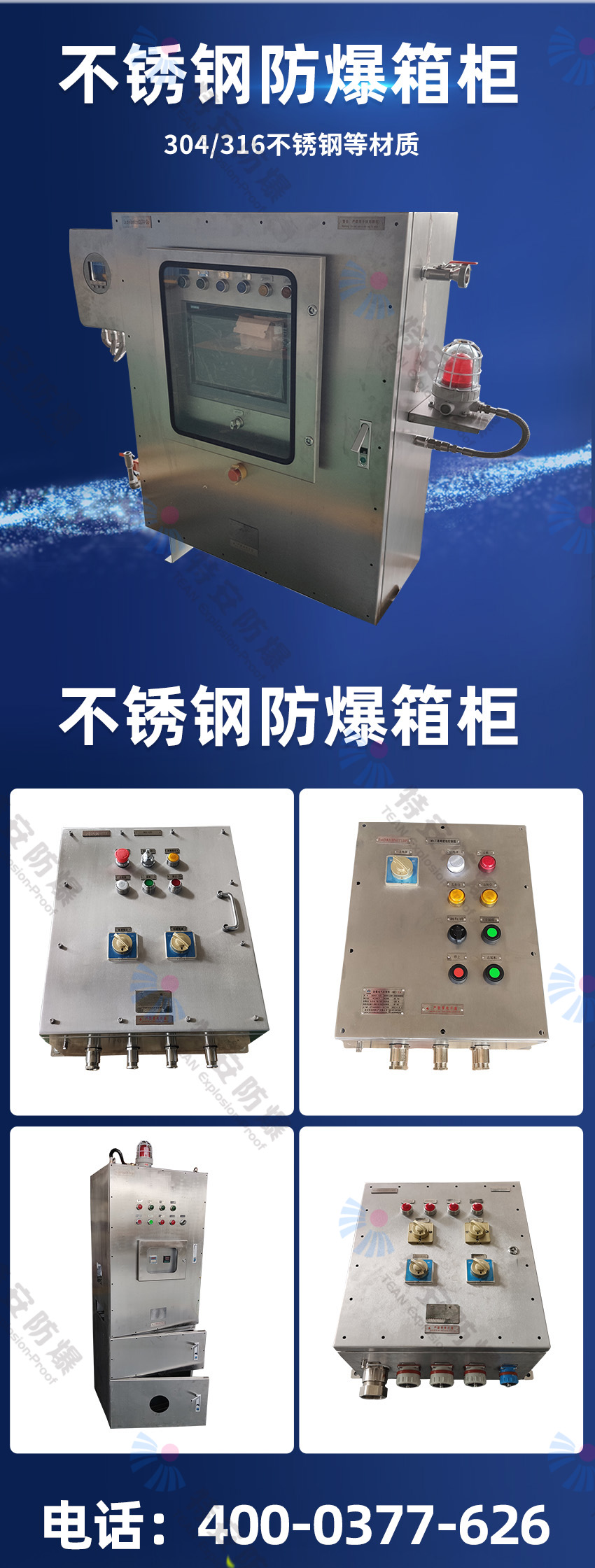 特安防爆專業(yè)生產(chǎn):防爆配電箱,防爆控制箱,防爆電控箱,防爆接線箱,防爆配電柜,防爆電氣控制箱,防爆電氣控制柜等各種防爆箱柜。我們擁有防爆研究所頒發(fā)的CNEX合格證,證書編號(hào)為CNEX19.4124